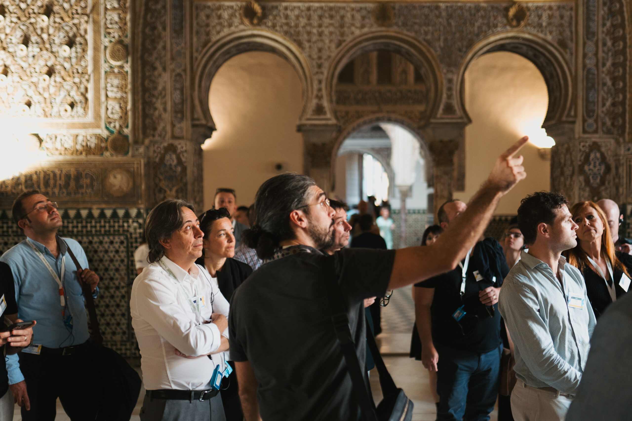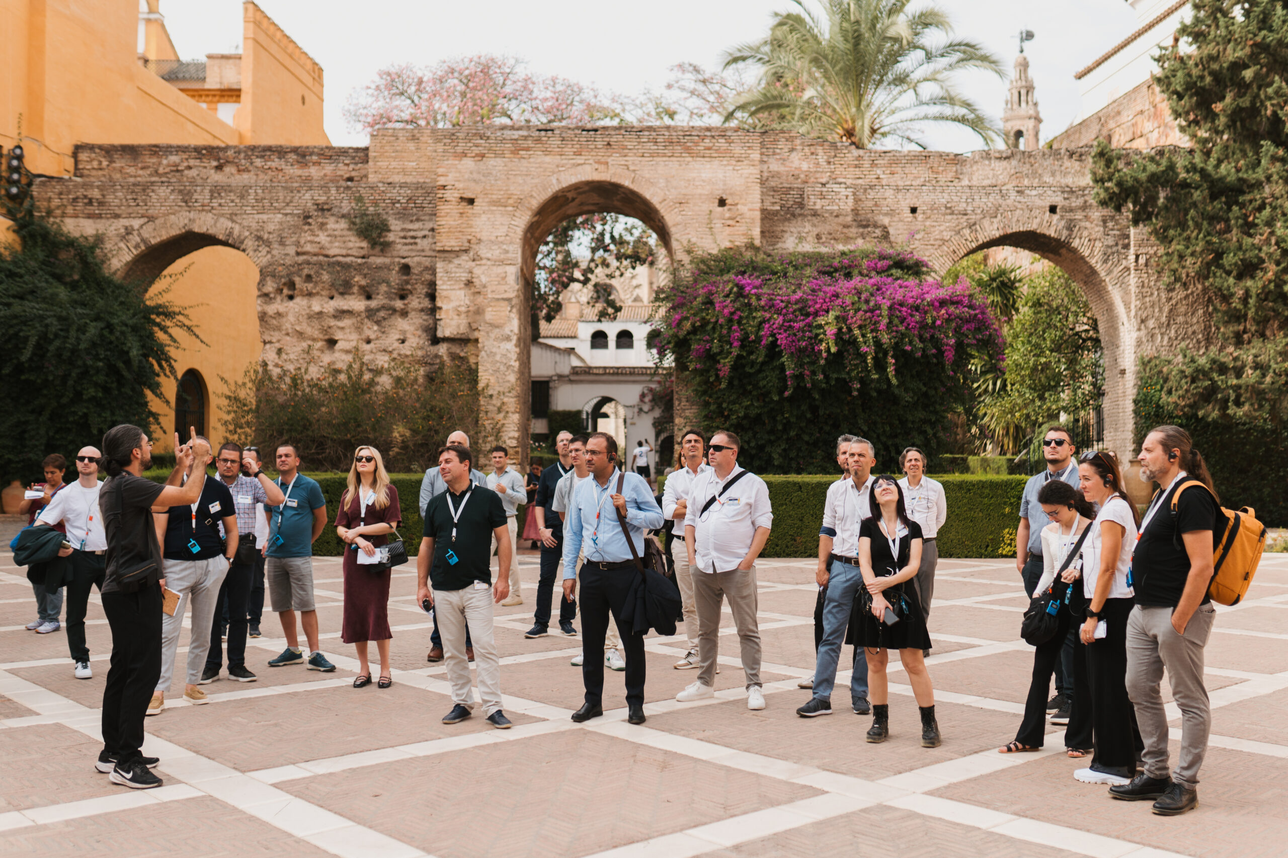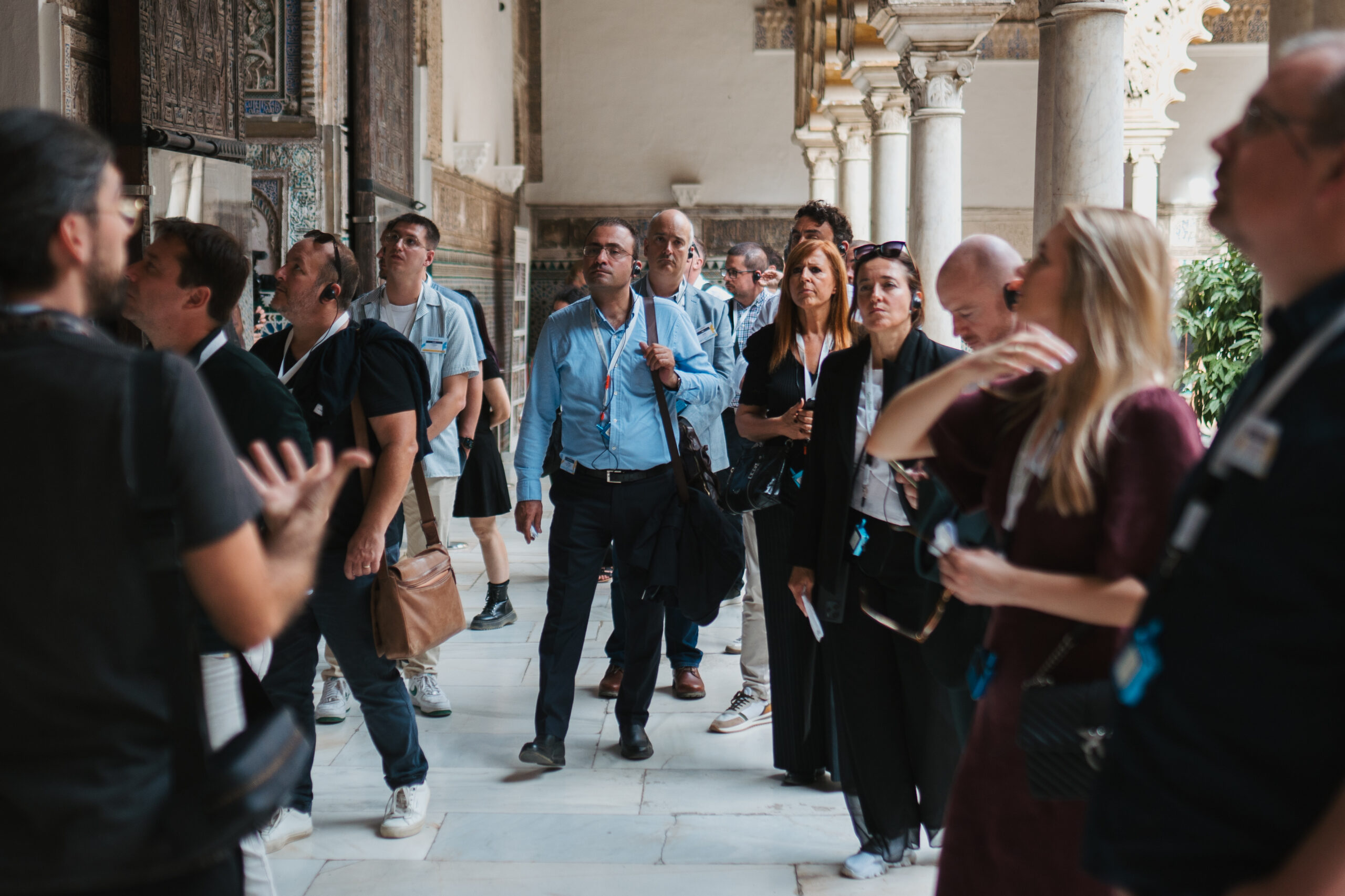 Firma TecLib zadbała również o niezwykle ciekawy aspekt kulturalny wydarzenia – dla uczestników zorganizowano zwiedzanie słynnego Real Alcázar de Sevilla, jednego z najpiękniejszych pałaców królewskich w Europie. To miejsce zachwyca bogactwem architektury, w której przeplatają się style islamski, gotycki, renesansowy i barokowy. Delikatne arabeskowe zdobienia, misternie rzeźbione łuki i pełne harmonii ogrody tworzą wyjątkową atmosferę, w której można poczuć ducha historii i wielokulturowego dziedzictwa Andaluzji.